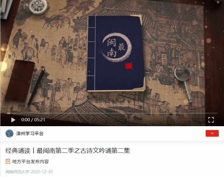学习强国漳州学习平台:经典诵读丨最闽南第二季之古诗文吟诵第二集