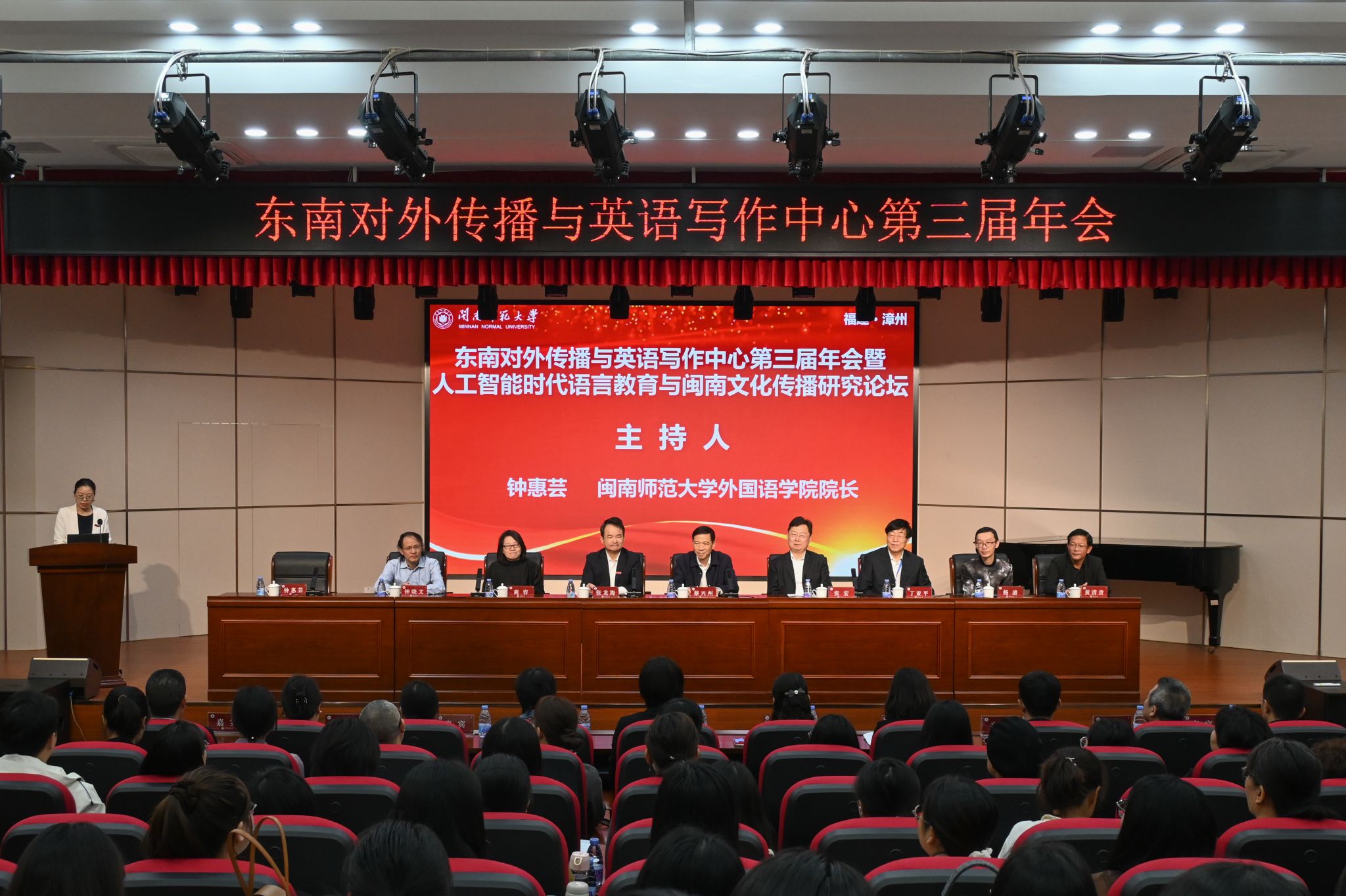 11月23日,“东南对外传播与英语写作中心第三届年会暨人工智能时代语言教育与闽南文化传播研究论坛”在我校举行。校党委常委、副校长张龙海,漳州市政协副主席蔡兴州、上海外语教育出版社副总编辑张宏出席开幕式并致辞。来自山东大学、福州大学、内蒙古大学、集美大学、哈尔滨商业大学、闽南师范大学等省内外高校的120余位专家学者参会。