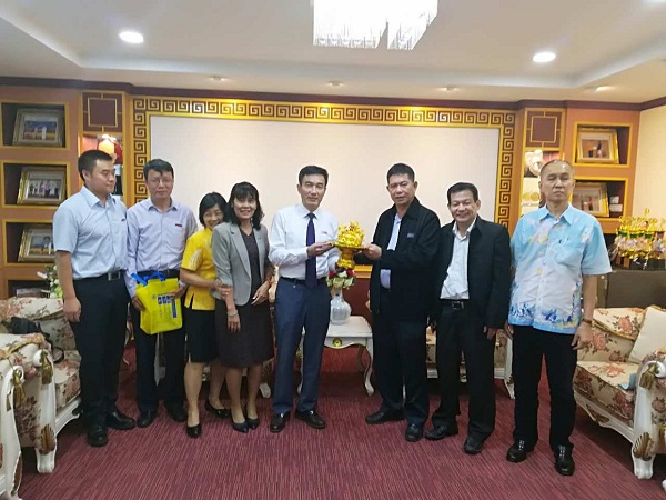 与泰国南部华文民校联谊会、泰国德教树强学校董事会负责人互赠礼品