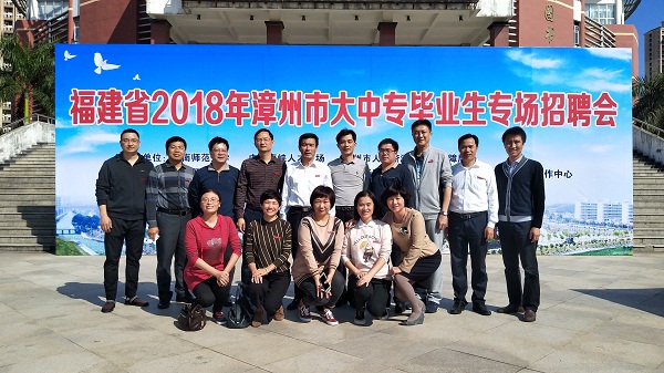 12月2日上午, 福建省2018年漳州市大中专毕业生专场招聘会在我校弦歌广场举行,本次招聘会由我校与中国海峡人才市场、漳州市人力资源和社会保障局共同举办,我校招生就业处、中国海峡人才市场漳州分部、漳州市大中专毕业生就业工作中心等单位具体承办。校党委书记吴彬镪、校长李顺兴、党委副书记钟发亮出席活动并现场指导工作。
