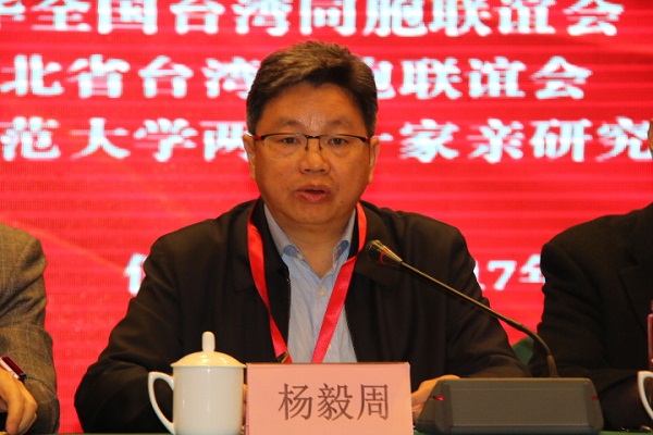 研讨会开幕式上,全国台联副会长杨毅周致辞并演讲。他表示,党的十九大是在全面建成小康社会决胜阶段、中国特色社会主义发展关键时期召开的一次十分重要的大会,是中国共产党历史上具有重要里程碑意义的盛会,是全国人民政治生活中一件顶重要的大事。他认为,习近平总书记重要讲话,高屋建瓴,博大精深,内容十分丰富,极具重要现实意义和深远历史意义,体现了习近平总书记治国理政新理念、新思想和新战略,为我们指明了新的前进方向,使我们倍受鼓舞,倍受启发,倍感亲切!他回顾了十八大以来习近平总书记的对台重要思想,他指出,习近平总书记站在国家发展全局和中华民族伟大复兴的战略高度,根据国内新形势和台湾形势发展变化,就对台工作提出一系列新理念新思想新战略,特别是深刻阐释了民族复兴与两岸前途的密切联系,树起了“两岸同胞携手共圆中国梦”的奋斗旗帜;他倡导“两岸一家亲”的理念,提出“促进两岸经济社会融合发展”、“增强两岸命运共同体认知”的重要思想,丰富了做好台湾人民工作的思想内涵,指出了一条新形势下推动两岸关系发展的重要途径。