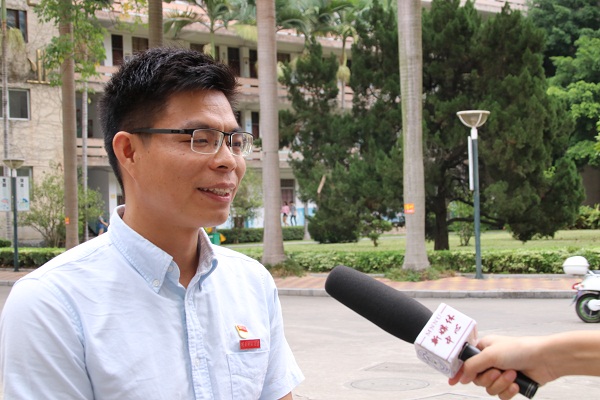 教育科学学院辅导员蔡毅强在接受漳州电视台等媒体采访时提到,一份好的报告令人明晰奋斗方向,催人奋进。听完习总书记在党的十九大上做的报告,备受鼓舞。十九大报告的最大亮点之一是更加突出“四个伟大”,让我们更加清楚地了解和把握我们党站在新的历史起点上,要以“什么样的精神状态”,靠“什么样的主体力量”、干成“什么样的事业”、实现“什么样梦想”等一系列治国理政问题。作为一名高校思想政治工作者,我们要自觉地学习好、宣传好党的十九大报告精神和新时代中国特色社会主义思想;同时,也要教育引导好广大青年大学生进一步坚定“四个自信”、认清中国发展大势,树立远大志向,明确自身的历史使命和时代责任,自觉地将个人成才发展融入发到实现中国梦的伟大实践中。