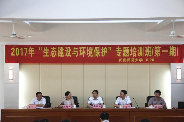 6月27日上午,2017年福建省公务员“生态建设与环境保护”专题培训班在我校正式开班。此次培训班由我校继续教育学院承办,来自省内各地的60名公务员参加本次培训。副校长李顺兴、省公务员局培训与监督处处长陈柳云等出席开班式。