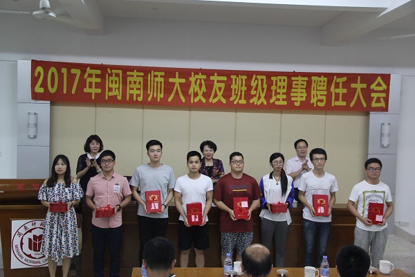 会上,校友会副会长、学生处处长林致远宣读了《关于聘任闽南师范大学2017届校友班级理事的通知》;校友会副秘书长、校友办副主任刘勤宣读了《闽南师范大学校友班级理事的权利和义务》;计算机学院2017届毕业生陈仁钦代表校友班级理事上台发言;校友会会长、副会长还为本届校友班级理事颁发了聘书。