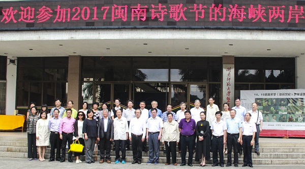 5月13日上午,2017闽南诗歌节——“诗歌与戏剧”大型文化交流活动在我校开幕。来自国内外近30名诗人、学者、文学评论家和剧评家欢聚一堂,围绕诗歌与戏剧、文学与艺术进行深入研讨与交流,与我校学子及漳州市民分享戏剧、琴艺、茶艺、书画等传统艺能延展活动的心得。福建省文联党组成员、副主席陈毅达、我校副校长肖庆伟、台湾明道大学副校长施慧敏、世界华文微型小说研究会副会长王勇、马来西亚作家朵拉、中国社会科学院文学研究所《文学评论》副主编曾镇南、台湾资深剧评家王墨林、台湾剧团团长金甲生,以及萧萧、白灵、罗文玲、戴潍娜等两岸著名诗人、剧评家、艺术家们出席开幕式。