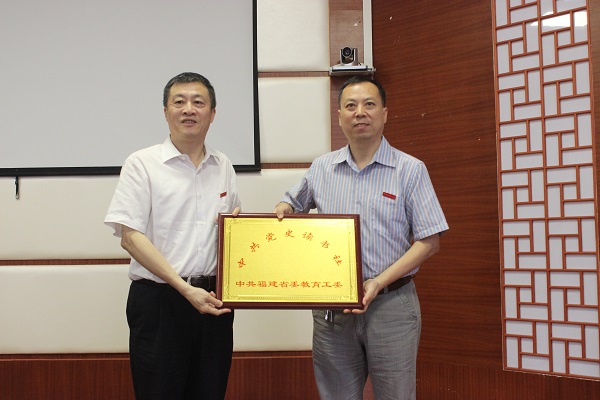 为进一步推进我校思想政治理论课建设,加强大学生党史国史学习教育,培养大学生爱党、爱国、爱中国特色社会主义的思想情感,4月20日下午,我校在东区报告厅举行“加强思想政治理论课建设工作推进会暨马克思主义理论读书社授牌仪式”。教育部高校思政课教学指导委员会委员、福建省高校思政课教学指导委员会主任郑传芳教授应邀出席会议,校党委书记林晓峰、党委副书记吴彬镪、副校长李顺兴出席会议。会议由吴彬镪副书记主持。