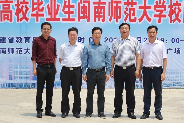4月23日上午,福建省2017年高校毕业生闽南师范大学校园招聘会在我校举行。此次招聘会由福建省教育厅主办,我校具体承办。校长李进金、校党委副书记吴彬镪、省教育厅学生处处长谢友平、调研员游金茂等莅临现场指导,我校招生就业处负责人、各院(系)分管学生工作负责人等出席招聘会,来自省内部分高校的5000多名毕业生和在校生参加了供需见面会。