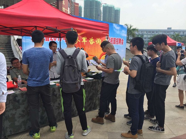 4月23日上午,我校征兵工作站抓住福建省2017年高校毕业生校园招聘会在我校召开的有利时机,联合芗城区东铺头街道办事处,在弦歌广场开展征兵宣传咨询活动,吸引了大批应届毕业生前来咨询。