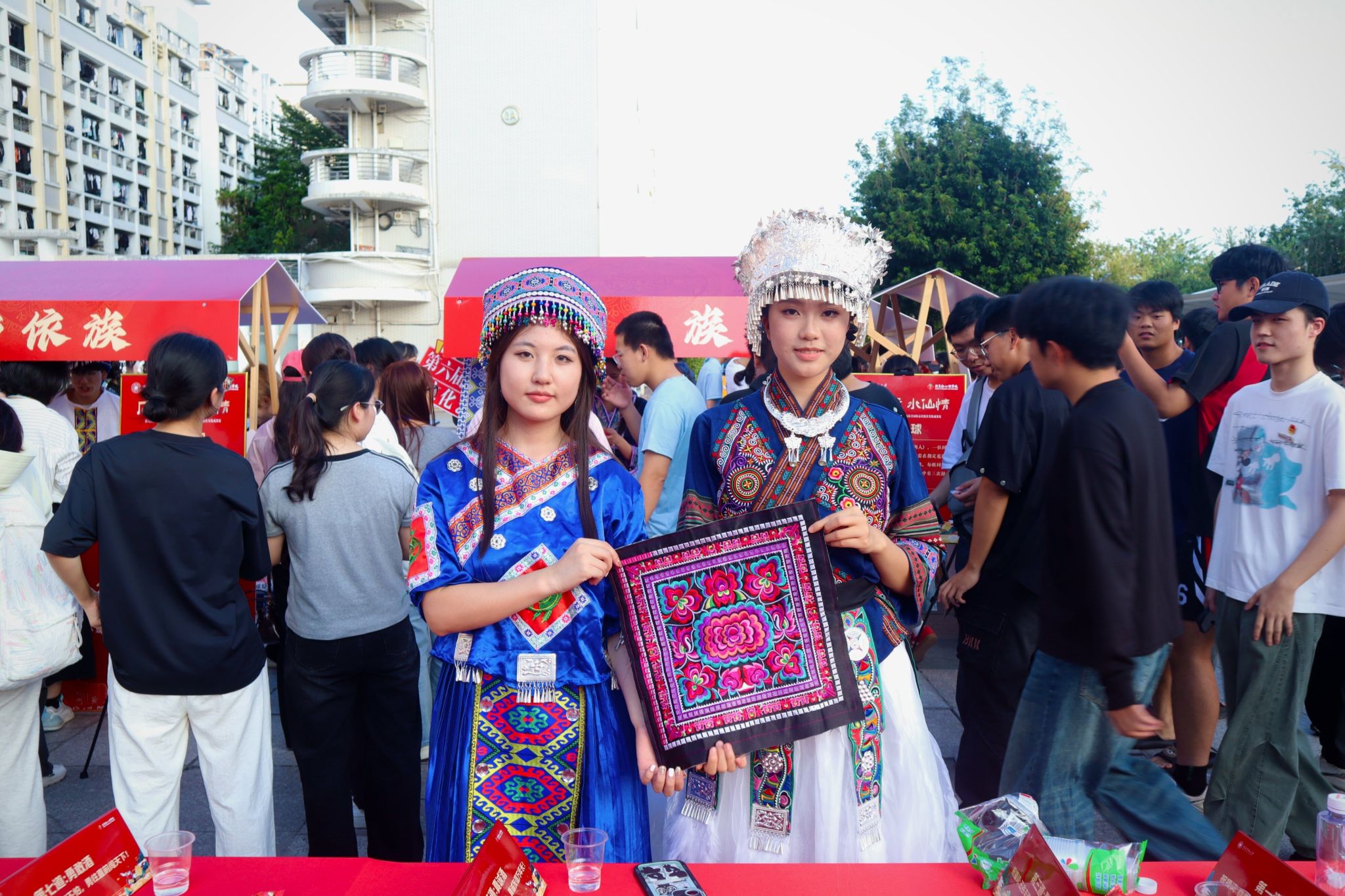 本届民族文化艺术节设有文艺展演、民族文化展、民族风情与中华优秀传统文化四大体验区,为师生呈现了一场精彩纷呈的民族文化盛宴。文艺展演中,各民族学生着节日盛装载歌载舞,带来民族服饰走秀与歌舞表演。民族文化展与风情体验区化身为生动的“民族文化课堂”,不仅展示了精美的手工艺品与服饰,更设有“抛绣球”“高山流水”等互动项目,让同学们在欢声笑语中深度体验多彩民俗。在中华优秀传统文化体验区,参与者们围坐一起,亲手体验剪纸、扎染、漆扇等传统技艺,感受指尖上的匠心传承。校领导们也来到同学们中间,亲切交流,共同领略中华文化的博大精深,现场气氛温馨融洽。