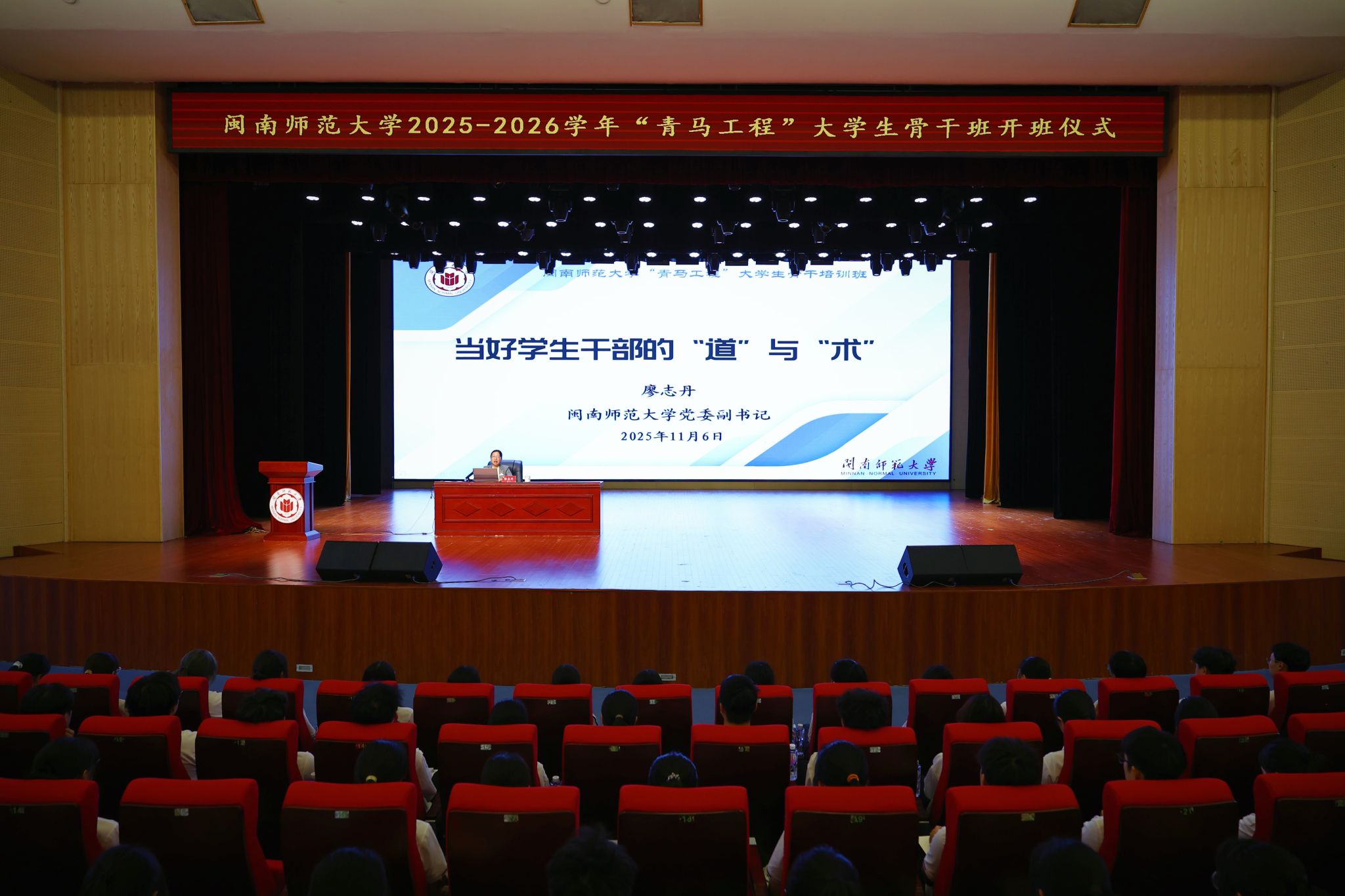 11月6日下午,我校2025-2026学年“青马工程”大学生骨干班开班仪式在闽南文化艺术中心多功能厅举行。校党委副书记廖志丹,党委常委、副校长张宏怡出席。