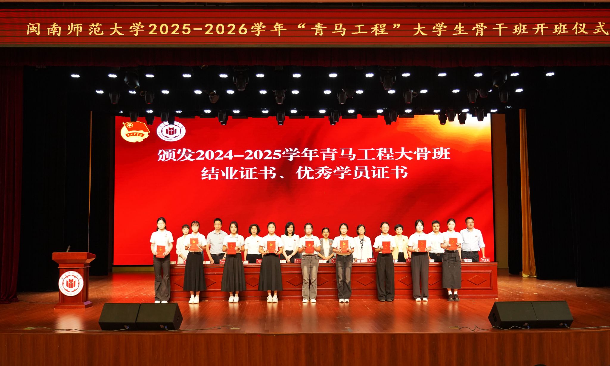 仪式上,张宏怡宣读2024-2025学年“青马工程”大骨班结业证书和优秀学员名单,与会领导颁发结业证书、优秀学员证书。校纪委纪检监察室监督检查科副科长洪仕南和文学院2022级汉语言文学(师范)专业本科生郑瑾容作为师生代表发言。