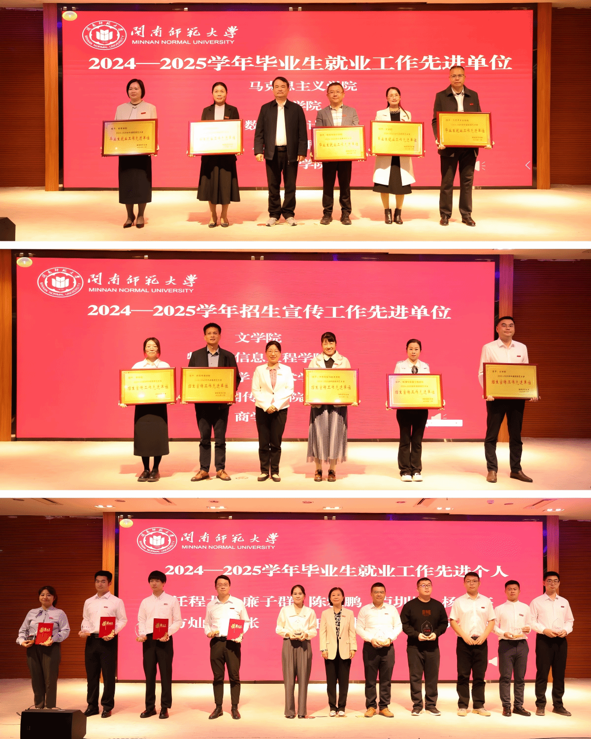 会上还举行2024—2025学年招生就业工作表彰仪式。张宏怡宣读表彰决定。校领导分别为毕业生就业工作先进个人、招生宣传先进单位、毕业生就业先进单位获表彰对象颁发了奖杯、奖牌和证书。
