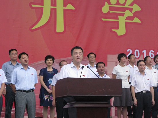 典礼最后,林晓峰书记代表我校师生对2016级全体新生表示了热烈的欢迎,并从细微处给新生们上了“入学第一课”。他希望新生们要珍惜大学宝贵时光,把时间用在立志成才、求学立业、素质拓展、锻炼身心、提升修养和公益活动中,守望初心胸怀理想,不断汲取知识,陶冶高尚情操,努力回报社会,做到明晓责任,懂得感恩,学会包容。最后,他用李大钊先生的《青春》寄语新生,勉励新生把奋发图强、勇挑重担内化为自身的品格,用勤奋书写青春,为中华民族的伟大复兴,不负青春华年,不负伟大时代!