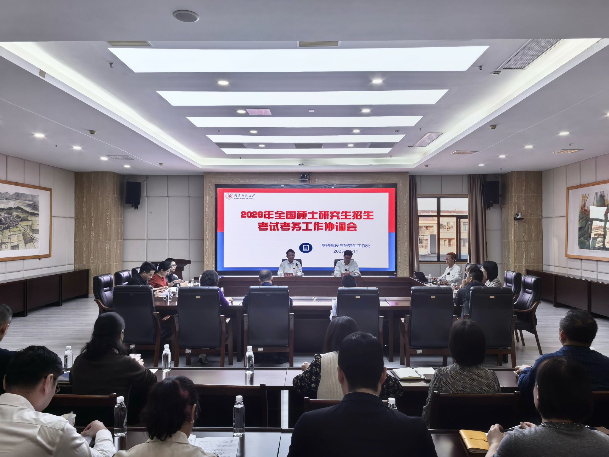 12月11日下午,我校在科技信息楼1607会议室召开2026年全国硕士研究生招生考试考务工作协调会。校党委副书记、校长张龙海,党委常委、副校长林耀进出席。