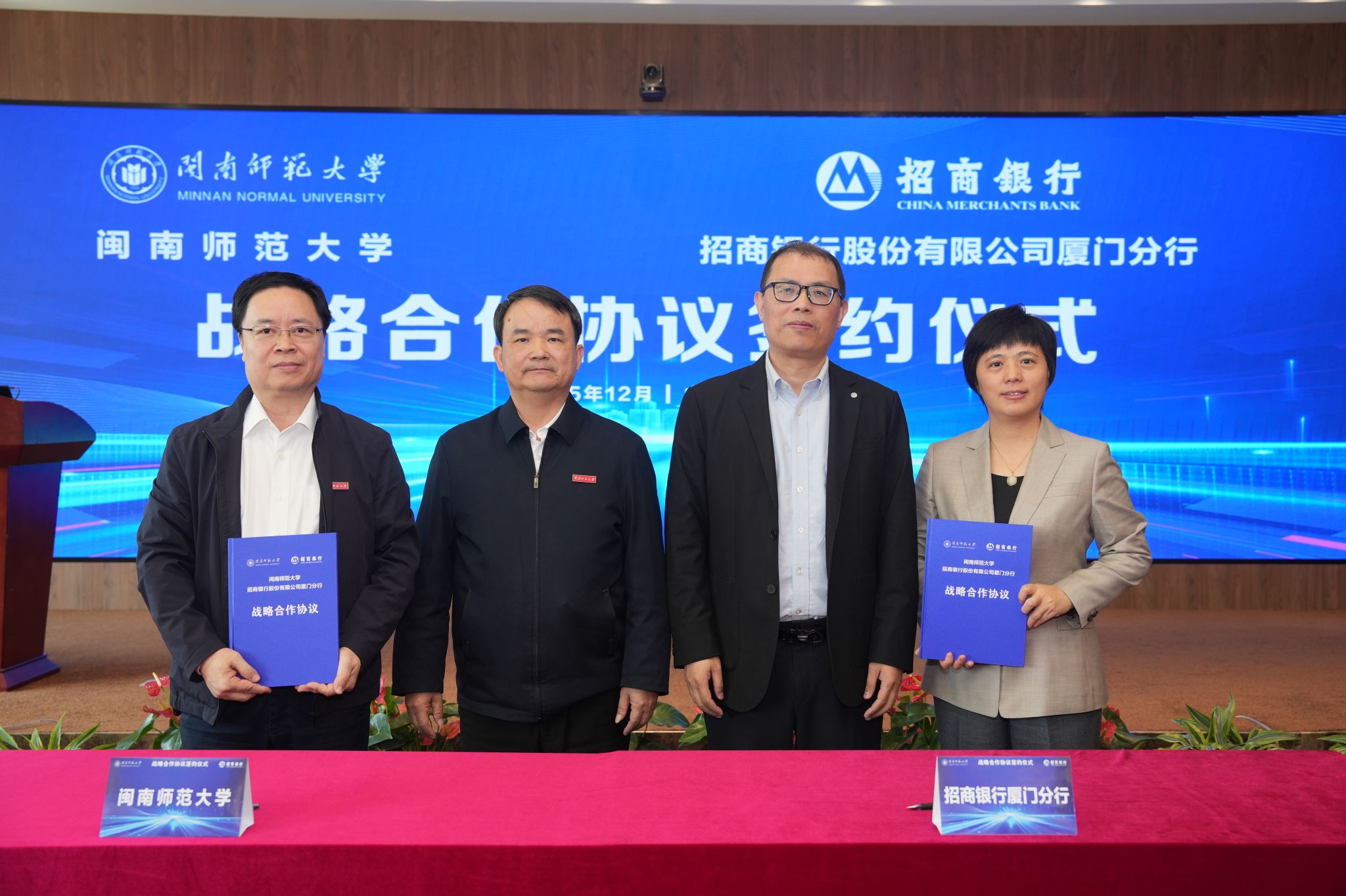 12月15日上午,我校与招商银行厦门分行战略合作框架协议签约仪式在招商银行厦门分行举行。校党委副书记、校长张龙海,党委副书记林致远,招商银行厦门分行行长郭夏森、副行长赖红梅出席签约仪式。双方相关部门负责人参加。