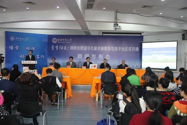 4月1日下午,我校举行首次新闻发布会,正式开通协同支教留守儿童关爱教育信息平台——“童享阳光网”(网址:http://txyg.mnnu.edu.cn)。副校长李顺兴,教务处副处长兼教师教育实习实训中心主任黄晓农,教务处副处长杨红和,学校法律顾问、法学与公共管理学院蓝潮永教授,留守儿童教育专家、教育科学学院心理学博士余益兵以及我校各学院师范专业师生代表出席新闻发布会。会议由宣传部部长罗炎成主持。
