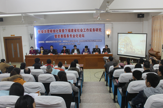 会上,蒋一婷副校长表示,福建省社会工作实务暨慈善服务专业化论坛的召开是我省社会工作人才队伍建设进程中的一件大事,是积极推进政府购买社会服务的一个阶段总结,是深入贯彻学习《慈善法》的重要行动。通过举办专业社会工作研讨会有助于我校提升社会工作专业办学水平,进一步增进我校社会工作专业服务地方经济社会发展的广度和深度。