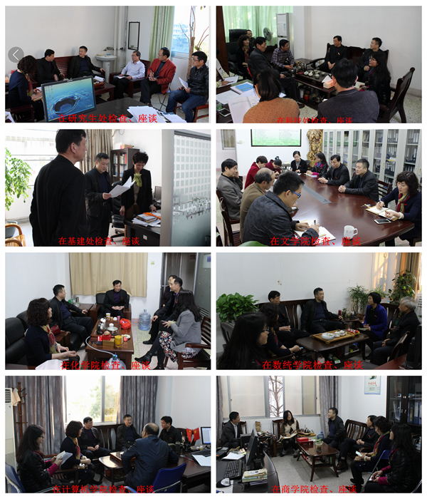 2月29日下午,校党委书记林晓峰、纪委书记黄来渊带领检查组对研究生处、科技处(社科处)、国资处、基建处,文学院、化学院、数统学院、计算机学院、商学院等单位进行党风廉政建设情况检查。检查组在听取主要负责人对本单位落实校党委的重大部署工作和廉政建设工作开展情况汇报后,针对近期校党委下发文件主要精神、两个《条例》学习、制度建设、科研经费使用、国有资产清查、研究生招生工作等进行了充分交流,并查阅了会议记录等相关资料。