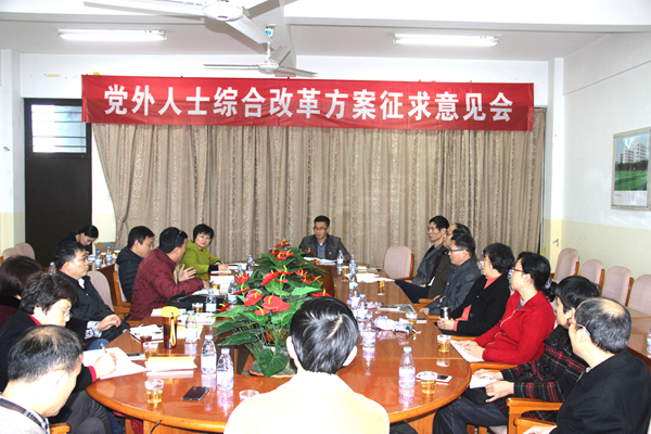 1月15日下午3点,校党委副书记吴彬镪在综合楼六楼会议(二)主持召开了党外人士综合改革方案征求意见会。统战部部长欧阳红红、各民主党派主委、无党派人士联谊会会长、留学生同学会会长以及部分党外教授代表出席了座谈会。