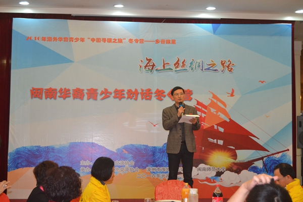 1月10日晚,2016海外华裔青少年“中国寻根之旅”冬令营——乡音故里:“海上丝绸之路”闽南华裔青少年对话冬令营在漳州开营。来自新加坡、马来西亚、印度尼西亚、越南、匈牙利、俄罗斯、台湾等7个国家和地区的45名师生参加了此次冬令营。活动为期一周。