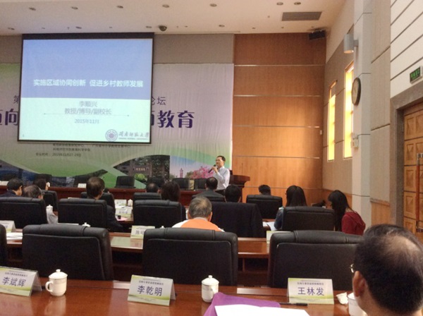 我校李顺兴副校长作了“实施区域协同创新,促进乡村教师发展”为主题的大会主旨报告,向大会介绍了学校近年来依托县域教师教育人才培养模式改革创新实验区,进一步优化地方政府统筹下的高校、政府、中小幼学校“三位一体”农村教师人才培养运行机制,实施区域协同创新促进乡村教师发展的实践探索。与会专家学者对报告给予高度认可,认为我校的改革实践值得学习和借鉴。