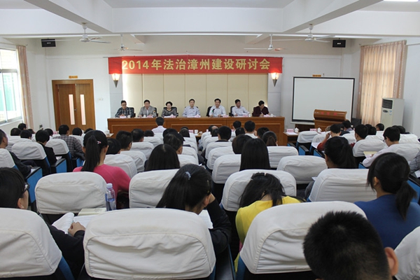 11月19日,由法学院、法治漳州研究中心和漳州市法学会联合举办的2014年“法治漳州”建设研讨会在我校召开。我校党委书记林晓峰,漳州市委常委、政法委书记、法学会会长刘文标,副校长蒋一婷,法学院、法治漳州研究中心、市法学会等单位领导、理事及2014年法治漳州建设研讨会入选论文作者共80多人参加会议。研讨会由市政法委副书记陈青树主持。