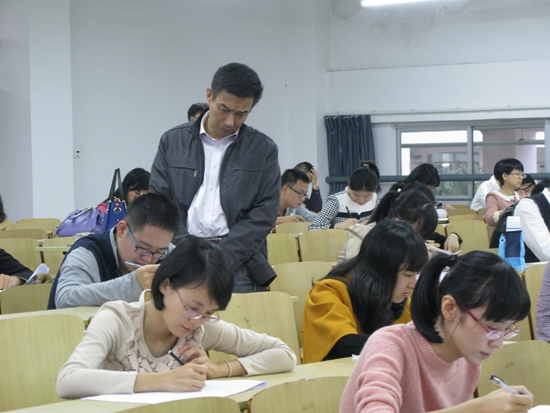 11月14日下午,我校2014年辅导员职业能力比赛初赛在砺志楼215教室举行,全校辅导员参加了比赛。校党委副书记吴彬镪到现场巡视考试情况。