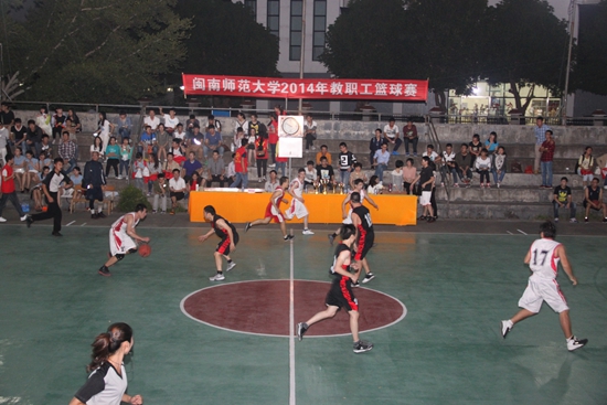 10月29日晚,闽南师范大学2014年教职工篮球比赛在校灯光球场圆满落幕。吴彬镪副书记、何绍福副校长、蒋一婷副校长莅临现场观看了比赛,各队领队、队员以及我校教职工和学生代表等200余人到场为双方队员加油助威。