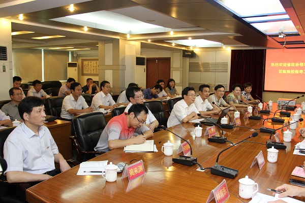 郑才木副主任和王敏副主任感谢我校对此次省政协视察调研活动的高度重视和大力支持。他们强调,我校发展应主动融入地方经济社会发展大局,积极整合校内外各种资源,扩大市校合作领域,落实市校合作政策,不断提高市校合作的水平,实现双方合作共嬴。要加强与省、市政府的沟通交流,促使省、市、校三方对学校发展定位达成共识,实现区域高等教育资源互补和院校共赢发展。