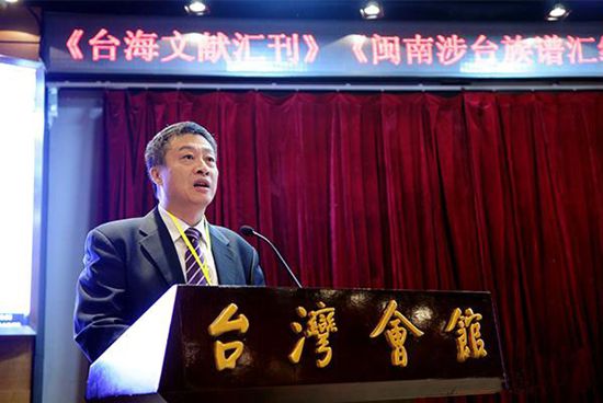 林晓峰在致辞中说,闽南师范大学是福建省重点建设的省属高校,始终坚持立足闽南区域,注重发掘地方历史文化资源优势,把闽南文化融入办学和育人的全过程,形成了鲜明的闽南文化办学特色。《台海文献汇刊》《闽南涉台族谱汇编》是闽南师范大学近年来精心打造的学术精品和标志性学术成果,其出版发行,具有较高的学术价值和积极的社会意义,必将有力地促进闽台文化研究,推进两岸文化交流,推动两岸关系和平发展,也为台湾同胞回大陆寻根谒祖提供坚实的资料基础。林晓峰表示,进入新时期,闽南师范大学将继续借力东风,乘势而上,在国务院台办、全国台联、福建省人民政府和海峡两岸相关兄弟院校以及在座各位知名专家学者的关心、帮助和支持下,学校一定能在传承创新闽南文化、促进两岸文化交流方面取得新的更大成绩,为推动两岸关系和平发展、促进祖国统一大业做出新的贡献!
