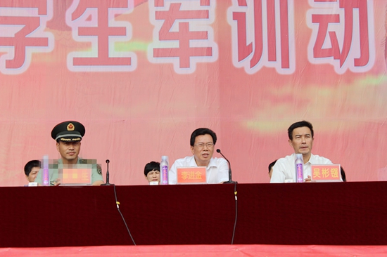李进金校长在大会上作了激情洋溢的动员讲话。他代表学校对承训部队官兵表示热烈欢迎和衷心感谢,向为军训辛勤工作的老师和参训的同学致以诚挚的慰问和良好的祝愿。他指出,军训是国家赋予大学生的光荣义务,是强化全民国防观念的重要手段,是大学生成长成才的必修课,他强调了军训对于磨练意志、强健体魄、拓展知识面、激发集体主义观念和培养优秀作风等方面的重要意义,并满怀希望锻炼体质和苦练本领能够成为同学们一生的好习惯,以自己的例子向同学们生动讲述了“身体素质靠练出来,本领也是苦练出来”的道理;满怀希望同学们认真向教官学技术、学本领,严格要求、刻苦训练,努力成为坚强的国防后备力量;满怀希望同学们通过军训插上“梦想”和“坚持”两个翅膀,在今后的学习生活中飞得更高、更远。