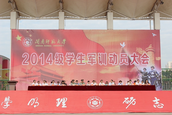 10月8日上午, 我校在西区田径场举行我校2014级新生军训动员大会,拉开2014级新生为期两周的军训序幕。校长李进金、校党委副书记吴彬镪、副校长李顺兴、校长助理林静华、承训部队首长,及我校有关部门、各学院党总支负责人出席军训动员大会,承训部队官兵、带新生辅导员及全体新生参加大会。学生处处长林致远主持了大会。