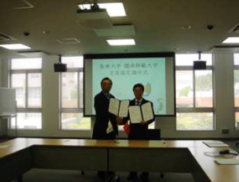 在岛根大学期间,李校长一行参观了该校出云分校和松江校本部,与岛根大学小林校长共同签署了两校合作协议,与该校小林校长、竹内副校长、国际交流中心安藤部长、综合理工学部长服部教授、杉江教授等进行了会谈,探讨了双方在教师进修深造、研究生培养、本科生交流学习、科研合作等方面的合作事宜。此次赴日本访问交流,对于进一步拓展我校的办学视野,提升我校对外合作的层次和空间,具有十分重要而深远的意义。