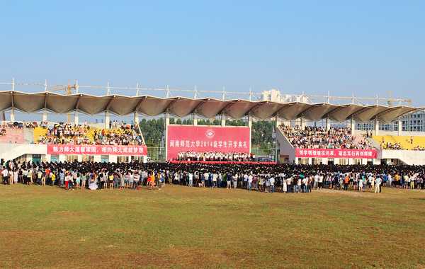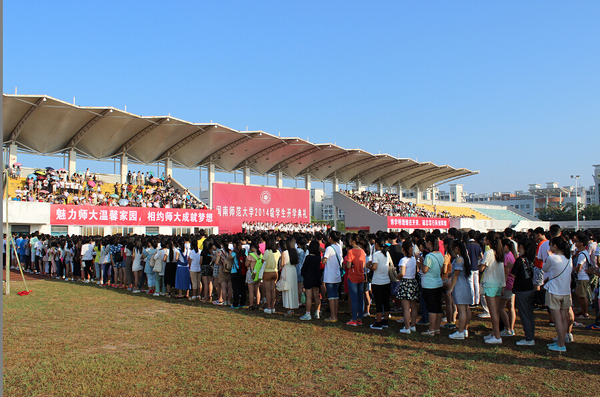 9月9日上午,来自全国各地的5000多名2014级新生怀着喜悦而激动的心情,相聚在达理运动场,参加我校2014级新生开学典礼。在家校领导林晓峰、吴彬镪、肖庆伟、李顺兴、何绍福、蒋一婷、黄来渊,我校校友、漳州市政协副主席李惜真,原漳州师范学院院长康锦堂,校长助理林静华,以及校相关部处负责人及各学院领导、全体机关、教辅单位工作人员,全体政工干部,各学院教研室负责人、办公室负责人、离退休教师代表、承担2014级新生课程的任课教师、闽南师大附属小学教师代表以及漳州校友代表参加典礼,共同掀开新一批闽南师大人新的人生篇章。大会由校党委副书记吴彬镪主持。