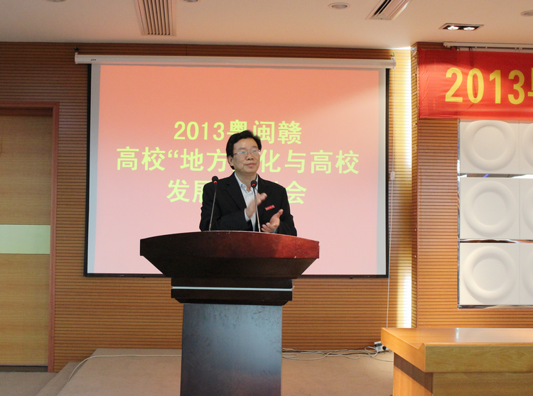 11月21日—22日,粤闽赣高校(部分)联谊会第五届年会在我校举行,来自粤闽赣三省13所高校领导、专家学者聚集一起,纵论“地方文化与高校发展”。22日上午,年会开幕式在逸夫楼图书馆五楼报告厅举行。韩山师范学院、嘉应学院、惠州学院、赣南师范学院、福建师范大学、集美大学等粤闽赣12所高校领导、专家,我校全体在家校领导,以及师生代表逾400人参加了开幕式。李进金校长欢迎辞,肖庆伟副校长主持了开幕式。