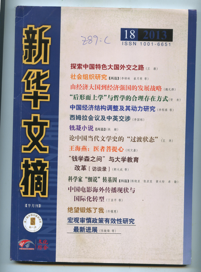 《新华文摘》由人民出版社主办,是人文社会科学领域权威性的学术资料文摘,以其思想性、学术性、前沿性、可读性、权威性享誉理论界和学术界。
