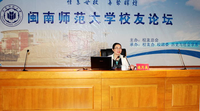 11月6日下午,校友论坛第三讲在逸夫图书馆五楼报告厅举行。本次论坛由我校92届政教系历史专业校友、现为厦门日报社台海杂志社社长、主编连月美主讲。校友办、校团委、历史与社会学系相关老师,部分院系校友会会长、秘书长以及各院系学生一同聆听了讲座。校友办主任陈超主持了本次论坛。