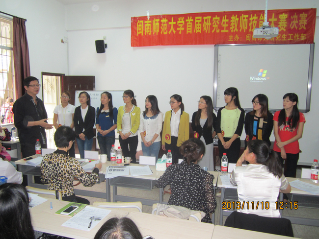 11月10日上午,我校首届硕士研究生教师技能大赛决赛在创业楼教师教育学院实训中心举行。本次大赛吸引了我校各个院系148名硕士研究生踊跃参赛,经过初赛、复赛的层层选拔,共有来自8个院系的20名选手闯入决赛。此次决赛特别邀请了我校相关学科教学法的资深教研教师以及漳州一中、三中、漳州普通教育教学研究室等中学高级教师担任评委。