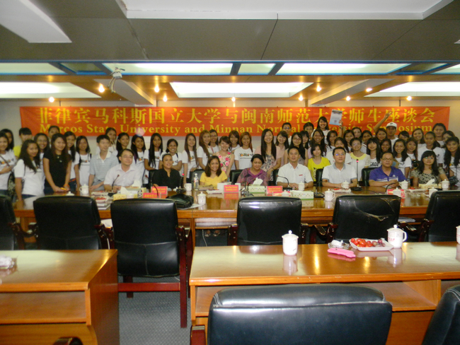 晚八点半,在逸夫楼三楼会议室举行了管理系学生与菲律宾马科斯大学师生座谈交流会,学生们交流了各自的学习心得,双方老师就课程设置方面的问题进行了经验交流。会议结束,双方互赠礼品、合影留念。