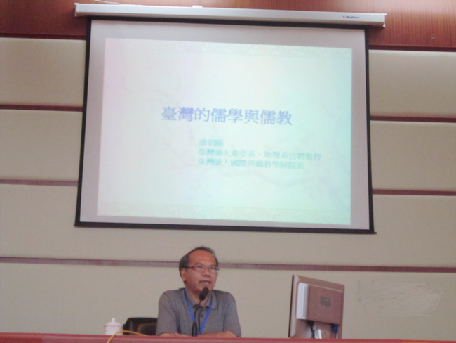 台湾师范大学潘朝阳教授讲座题目为“台湾的儒学与儒教”。潘教授就台湾儒学与大陆儒学之间的密切关系;台湾儒学的传承谱系及代表人物;台湾儒学传播的宗教化模式;现代台湾儒学代表人物与发展现状等相关问题展开阐述,资料翔实、条理清晰,让听众切身感受儒学传播与中华文化在台湾生根发芽之间的重要关系及当代台湾儒者传播中华文化的精神与使命感。