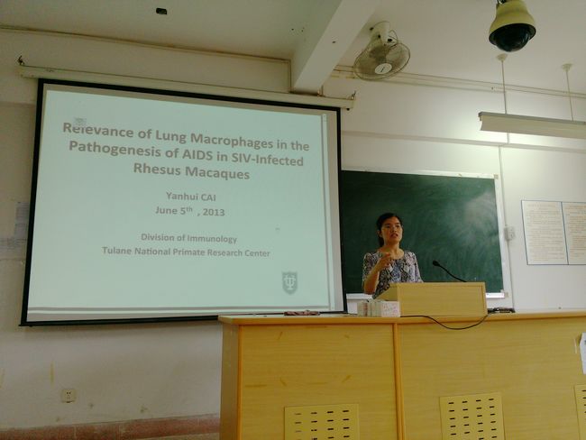 6月5日下午,美国杜兰大学国家灵长动物研究中心蔡燕惠博士应生物系邀请在博西201为生物系师生开展关于AIDS感染灵长类动物的最新研究成果以及猴感染AIDS病种与肺巨噬细胞的关系的学术报告。讲座由系副主任张敬虎教授主持。