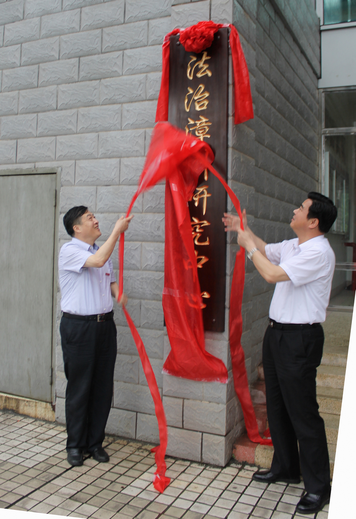 签约结束后,林晓峰书记和刘文标书记共同为中心揭牌,并一同参观了法治漳州研究中心办公室。
