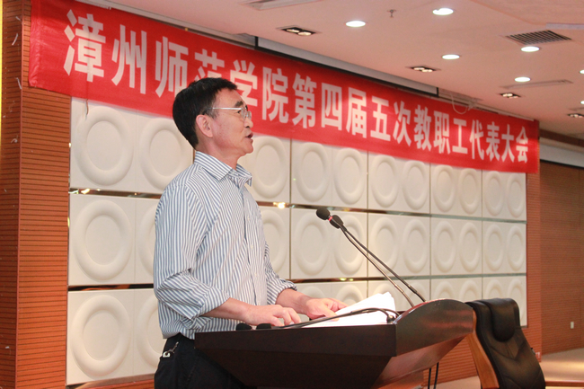 下午4点30分,大会在庄严的国歌声中隆重开幕。本次会议共分为三项议程,听取上次教代会相关意见与建议的落实情况反馈;听取2013年预算安排方案的说明;听取关于漳州师范学院职称聘任制改革系列文件(草案)的说明,并审议通过相关文件。