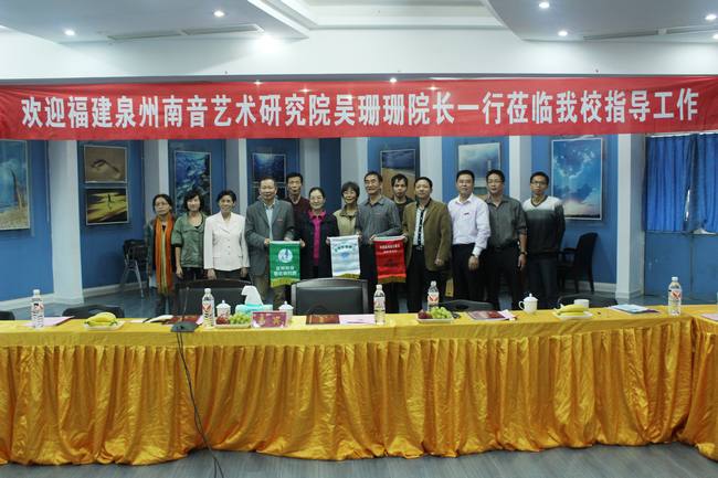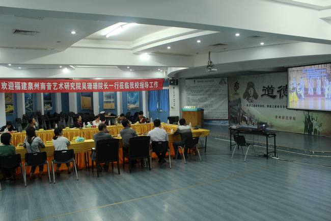 会议伊始,郑炎山对我校南音学会的相关情况进行简要介绍。随后,双方观看了我校南音学会参加演出的视频片段。林春生副书记为泉州南音艺术研究院赠送相关材料和纪念品,南音艺术研究院回赠我校三面锦旗及纪念品。接着,吴珊珊院长介绍了南音艺术研究院创立及发展历程,并展示了所取得的成果。到目前为止,南音研究院在全国各高校设立了1100多个社团,初步整理了南音散曲6000多首,曲牌900多个,从各地研讨会收集的相关论文300多篇。交流会结束后,吴院长一行到我校南音学会活动室参观、指导并观看学生排练。