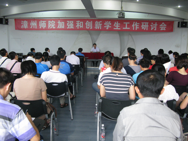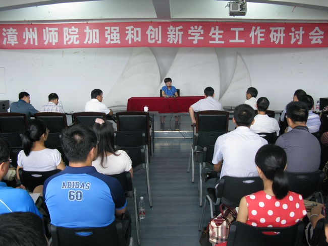 8月29日上午,我校在达理学生活动中心三楼召开新学期政工干部会议暨漳州师院加强和创新学生工作研讨会。院党委副书记林春生出席会议,全体政工干部参加会议。会议由学生处处长林静华主持。