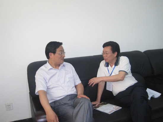 图为会议期间,李院长向宋永刚副司长汇报“三位一体”创新实验区建设情况