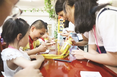 7月9日,志愿者陪伴指导孩子书写“微心愿”。当日,共青团芗城区委、芗城区妇联、关工委等在漳华社区举办“童享阳光 筑梦芗城”青少年社区暑期公益夏令营,闽南师范大学青年志愿者与孩子一起开心地做互动游戏。活动为期5天,围绕青少年思想教育、学业辅导、心理调适、动手实践等开展课程,旨在丰富青少年暑期生活,让青少年在家门口享受优质的校外教育。