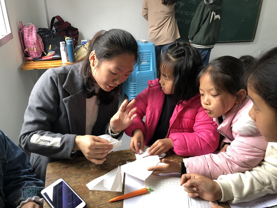 开班仪式后,志愿者将学生按年级分组,为他们讲授了折纸、国学、武术等课程,最后进行一对一的作业辅导,圆满完成了第一期的各项教学安排。