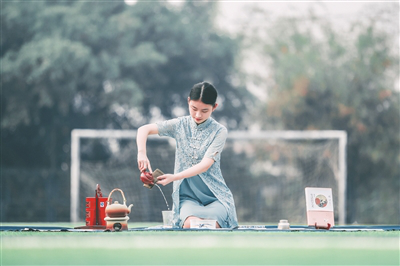新春伊始,绿芽萌动,闽师大文学院大学生茶道艺术团,以“东湖茶叙”缔结大国外交为灵感,在漳州南湖表演双手同泡绿茶红茶的技艺,绿茶清醇,红茶明艳,在透明的盖碗中绿红分明,清澈莹润,舞动的茶叶恰似春天无限的生机。同时,艺术团还在校园绿地场上摆上茶席,席地而坐,以林语堂先生实际素描本乡泡茶须有“一个泥茶壶和四个比咖啡杯小一些的茶杯”为茶席组合,向大学师生展现春之云席,愿人们不负春光不负茶,到江滨两岸品味茶香,品读茶乡。