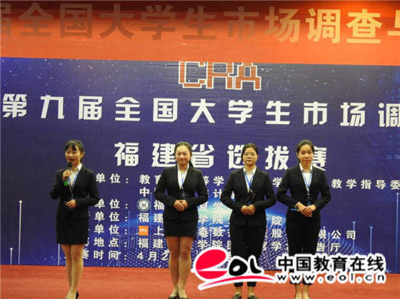 据悉,全国大学生市场调查与分析大赛由教育部高等学校统计学类专业教学指导委员会、中国商业统计学会、(台湾)中华应用统计学会共同主办,是面向海峡两岸高校大学生的一项公益性专业赛事。大赛旨在提升两岸高校统计调查及相关专业课程的学、研、产及创新实践的发展水平,引导大学生创新和实践,提高学生的组织、策划、调查实施和数据处理与分析等专业实战能力。此次福建省选拔赛,共有来自福州大学、华侨大学、闽南师范大学等9所省内高校的31支队伍参加比赛。(编辑:李小霞 黄艺琳 通讯员/卢永芳)
